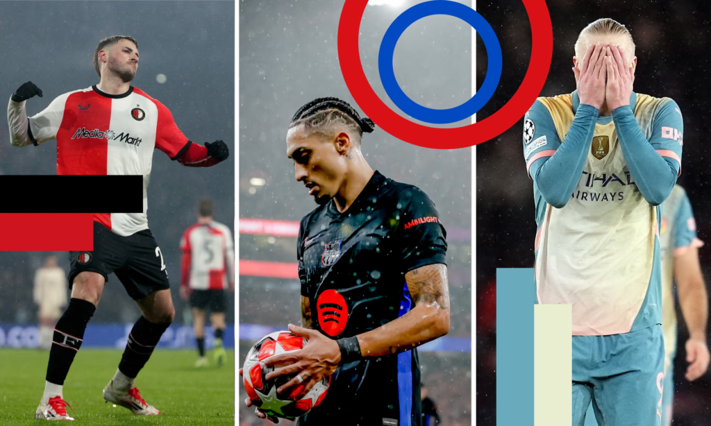 로테르담에서 벌어진 소란스러운 밤은 드 쿱보다 시끄러운 경기장이 거의 없는 상황에서 빈센트 콤파니의 바이에른이 격렬한 페예노르트에게 3-0으로 패하면서 당황스러웠습니다. 바이에른 수비진 중 일부는 지난 시즌 번리 팀 콤파니가 강등된 것과 비슷합니다. 레버쿠젠이 지난 시즌 거의 완벽에 가까운 성적을 거두지 못하고 라이프치히도 패배하는 등 그의 공격적인 접근 방식은 분데스리가에서도 효과를 발휘하고 있습니다. 그러나 챔피언스리그에서는 바이에른이 15위로 원정 경기력이 좋지 않아 플레이오프가 거의 확실시되고 있습니다. 로테르담은 원정에서 세 번째 패배를 당한 경기였습니다. 레알 마드리드와 PSG는 이 추가 경기에서 기다릴 수 있으며 둘 다 상대가 아닙니다. 하지만 수비만 그런 것은 아니었습니다. 바이에른은 30개의 슈팅을 골대에 맞았지만 해리 케인을 포함해 4개의 슈팅만 골대에 맞섰습니다. “공이 백라인에 도달하기도 전에 공격수들로부터 수비가 시작되는 것은 한 개인이 아닙니다.”라고 Kompany는 말합니다.